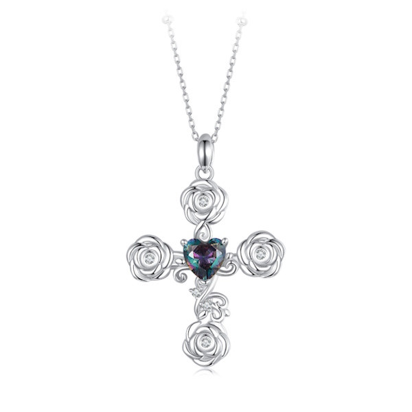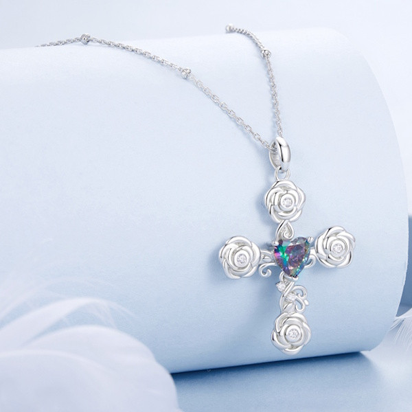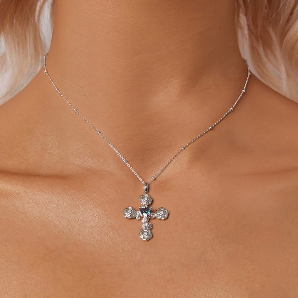Ez a lenyűgöző, 925 sterling ezüstből készült női nyaklánc igazán különleges darab, amely eleganciát és stílust sugároz. A csodás rózsás kereszt motívum nemcsak esztétikai élményt nyújt, hanem mély szimbolikával is bír: a kereszt az élet, a hit és a védelem jelképe, míg a rózsa a szeretet, a szépség és az újjászületés szimbóluma. A medál aprólékos kidolgozottságát a cirkóniumkristályok és az áttetsző üveg teszi még varázslatosabbá, melyek finoman megcsillannak a fényben. A 45 + 5 cm-es lánchosszúság és a 3.3 × 2.2 cm-es medálméret kényelmes viseletet biztosít minden alkalomra. Ez a nyaklánc tökéletes választás lehet különleges ajándékként, amely maradandó emlékként őrzi a fontos pillanatokat. Viseld büszkén, vagy lepd meg vele szeretteidet, hogy kifejezd a legőszintébb érzelmeket.