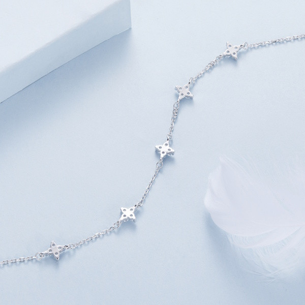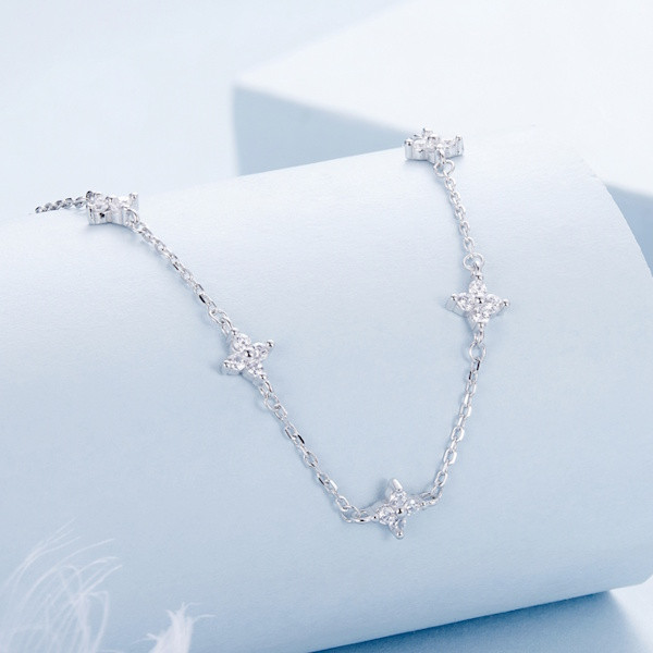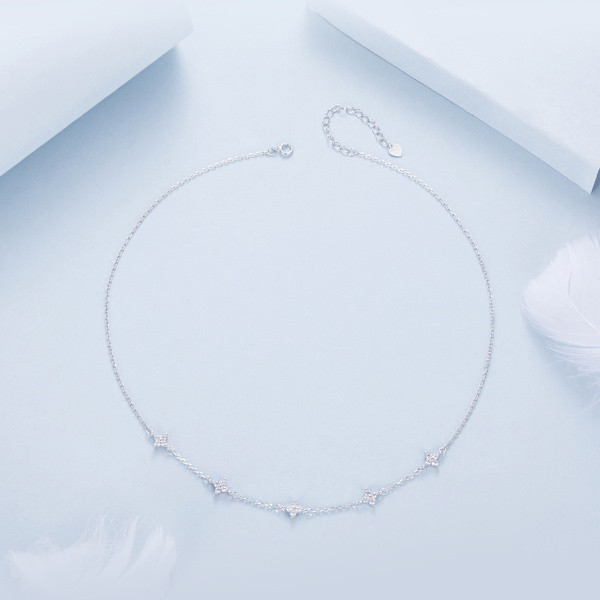 Ez a lenyűgöző női nyaklánc a csillagok varázslatos világát hozza el számodra, kifinomult eleganciával. A 925 sterling ezüst alapanyagnak és a platinabevonatnak köszönhetően a nyaklánc nemcsak időtálló, de ragyogó fényével is elbűvöl. A csillagok motívuma ősidők óta az útmutatást és a reményt szimbolizálja, és viselőjének mindig emlékeztethet arra, hogy kövesse az álmait. A finoman megmunkált cirkóniumkristályok még inkább kiemelik a csillagok varázsát, és minden pillantásra új fényben tündökölnek. Tökéletes választás mindennapi viselethez vagy különleges alkalmakra. Ajándékként is ideális, hiszen a csillagok fénye bárki számára személyes üzenetet hordozhat. Hagyd, hogy ez az ékszer elkísérjen az utadon, és tündököljön veled minden pillanatban.