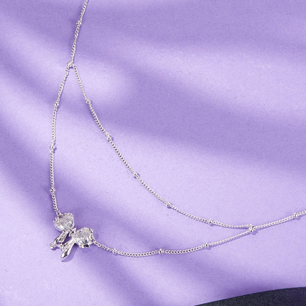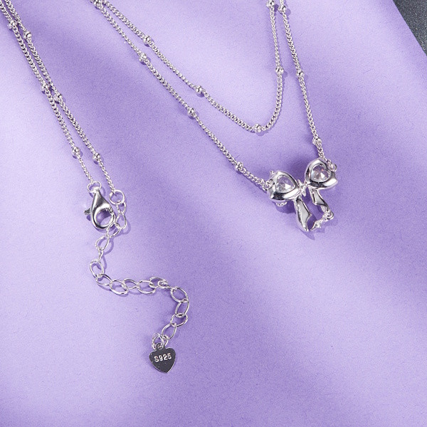 Fedezd fel az elegancia és a finomság tökéletes kombinációját ezzel a gyönyörű ezüst nyaklánccal, amelyet egy bájos masnimedál díszít. A 925 sterling ezüstből készült lánc fehérarany-bevonata ragyogó fényt kölcsönöz, míg a cirkóniumkristályok csillogása garantáltan vonzza a tekinteteket.