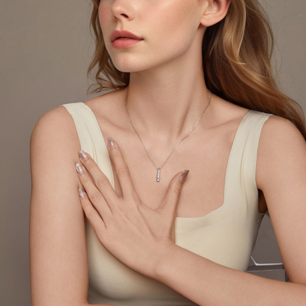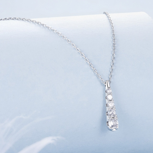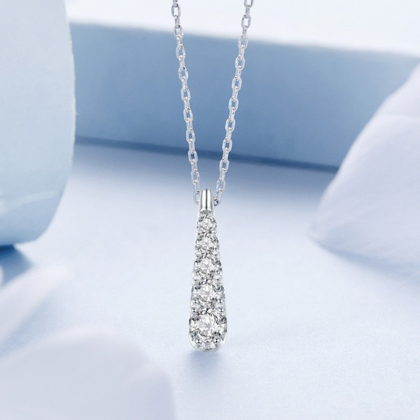 Ez a gyönyörű, 925 sterling ezüstből készült női nyaklánc tökéletes kiegészítője lehet minden elegáns megjelenésnek. A fehérarany-bevonat különleges fényt kölcsönöz neki, míg a csillogó cirkóniumkristály a cseppformájú medál közepén ragyog. A csepp alakú motívum az élet folytonosságát és a tisztaságot szimbolizálja, amely számos kultúrában az érzelmi egyensúlyt és a harmóniát jelképezi. A 45 cm hosszú lánc finom, könnyed viselet, súlya csupán 2.2 gramm, így szinte észrevétlenül simul a nyakadhoz. A medál mérete, 1.8 x 0.4 cm, éppen megfelelő ahhoz, hogy diszkréten, mégis feltűnően díszítse a dekoltázsodat. Ez a nyaklánc ideális választás személyes ajándéknak is, amellyel kifejezheted szeretetedet és megbecsülésedet. Lepd meg vele szeretteidet, vagy akár magadat, és élvezd a mindennapi elegancia varázsát!