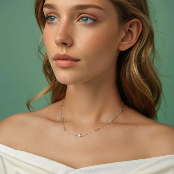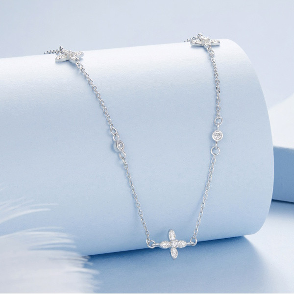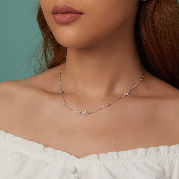 Ez az elegáns, 925 sterling ezüstből készült női nyaklánc igazi ékszerkülönlegesség, amely finom fehérarany-bevonatával és csillogó cirkóniumkristályával bármely megjelenést feldob. A 40 cm hosszú lánc könnyedén illeszkedik a nyakvonalra, miközben a 2.4 grammos súlyának köszönhetően szinte észrevétlen marad, mégis ragyogóan vonzza a tekinteteket. A gyönyörű, 0.8 × 0.3 cm-es virágmotívum nemcsak stílusos, hanem szimbolikus jelentéssel is bír: a virágok az élet szépségét, az újjászületést és a növekedést jelképezik, amelyek tökéletesen kifejezik a nőiességet. Ez a nyaklánc ideális ajándék lehet szeretteid számára, legyen szó születésnapról, évfordulóról vagy bármilyen különleges alkalomról, amikor szeretnéd kifejezni érzéseidet. Engedd, hogy ez a varázslatos ékszer meséljen helyetted!