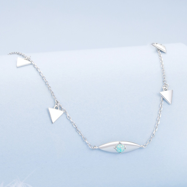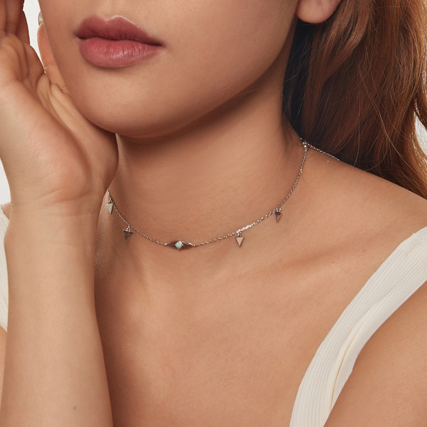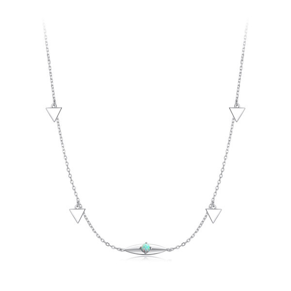 Fedezd fel az elegancia új szintjét ezzel az ezüst nyaklánccal, amelyet az opálkő csillogása tesz igazán különlegessé. A 925 sterling ezüst alapanyagnak köszönhetően a nyaklánc nemcsak időtálló, de rendkívül stílusos is, míg a fehérarany-bevonat elegáns ragyogást biztosít. Az opálkő háromszög alakú medálja bármely öltözékedet feldobja, miközben finom, modern megjelenést kölcsönöz.
