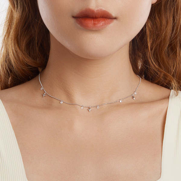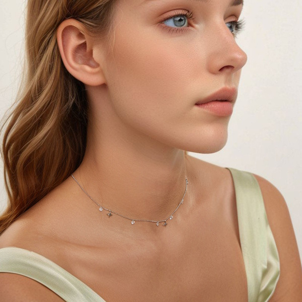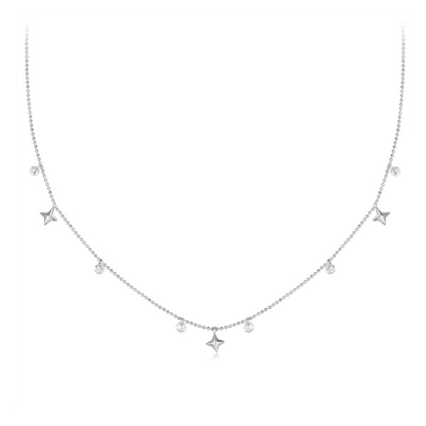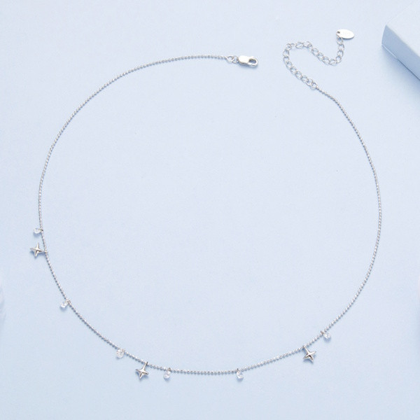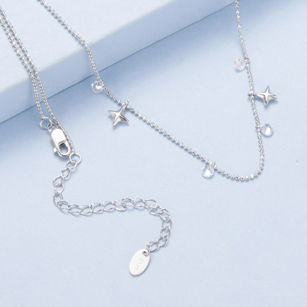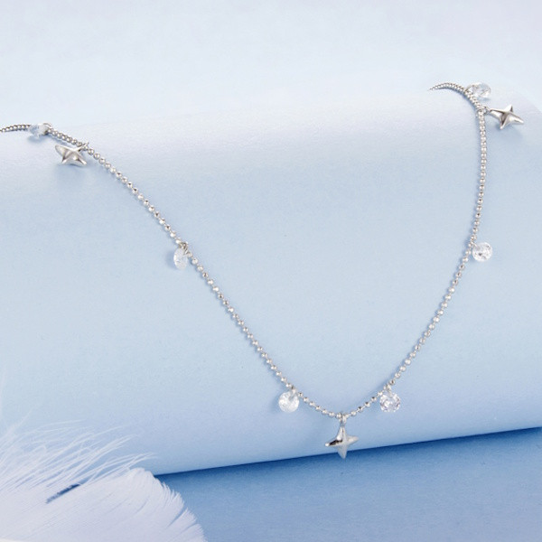 Ezüst női nyaklánc csillagokkal és gyöngyökkel