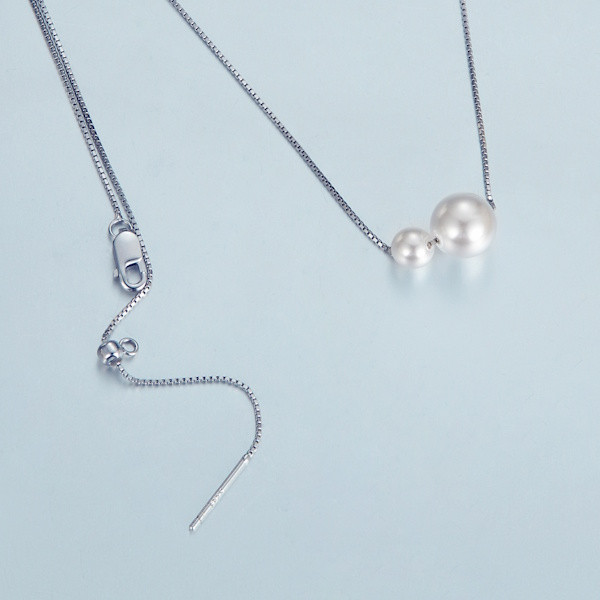 Ez a 925 sterling ezüstből készült, fehérarany-bevonattal ellátott elegáns nyaklánc a kifinomultság és az időtlen szépség megtestesítője. Az apró, valódi fehér gyöngyök finom harmóniában sorakoznak a 44 cm hosszú láncon, amely könnyedén illeszkedik bármilyen dekoltázshoz. A gyöngyök különböző mérete – 0.8 és 0.5 cm – finom kontrasztot teremt, ami kiemeli a viselője természetes szépségét. A gyöngyök évezredek óta a tisztaság és a bölcsesség szimbólumai, így viselésük nemcsak esztétikai élményt nyújt, hanem mélyebb jelentéssel is bír. Tökéletes választás mindennapi viseletre vagy különleges alkalmakra, és kiváló ajándék lehet szeretteid számára, akik értékelik a minőségi és stílusos kiegészítőket. Engedd, hogy ez a nyaklánc egyedi ragyogást adjon megjelenésednek!