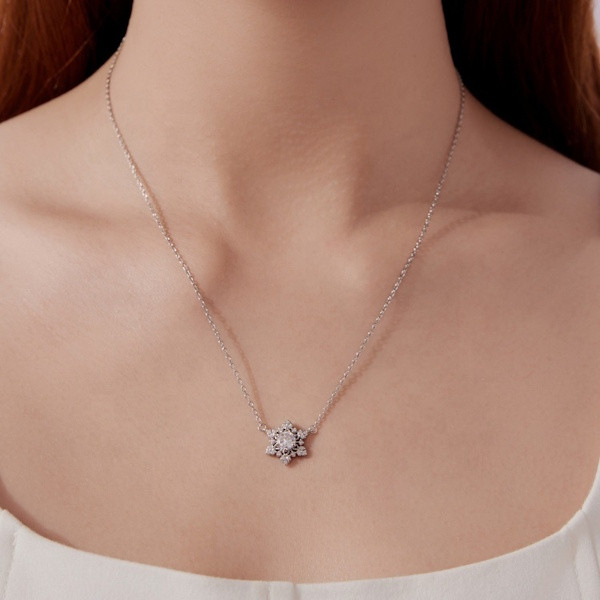 Éld át a tél varázsát ezzel a lenyűgöző ezüst nyaklánccal, amelyet egy gyönyörű hópehely medál ékesít. A 925 sterling ezüstből készült lánc finom fehérarany-bevonattal rendelkezik, amely kiemeli a medálon található cirkóniumkristály káprázatos ragyogását. A hópehely motívum a természet tökéletességét és az egyediség szépségét szimbolizálja, hiszen minden hópehely egyedi, akárcsak te magad.