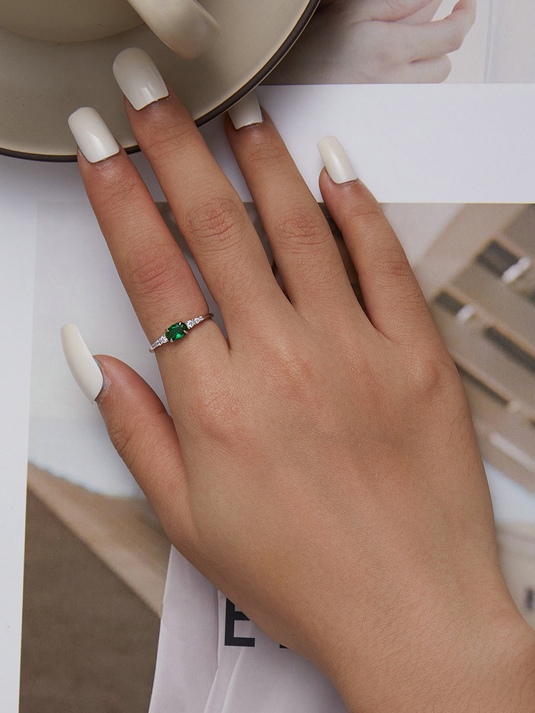 Ezüst női eljegyzési gyűrű smaragdzöld kővel, 6-os méret