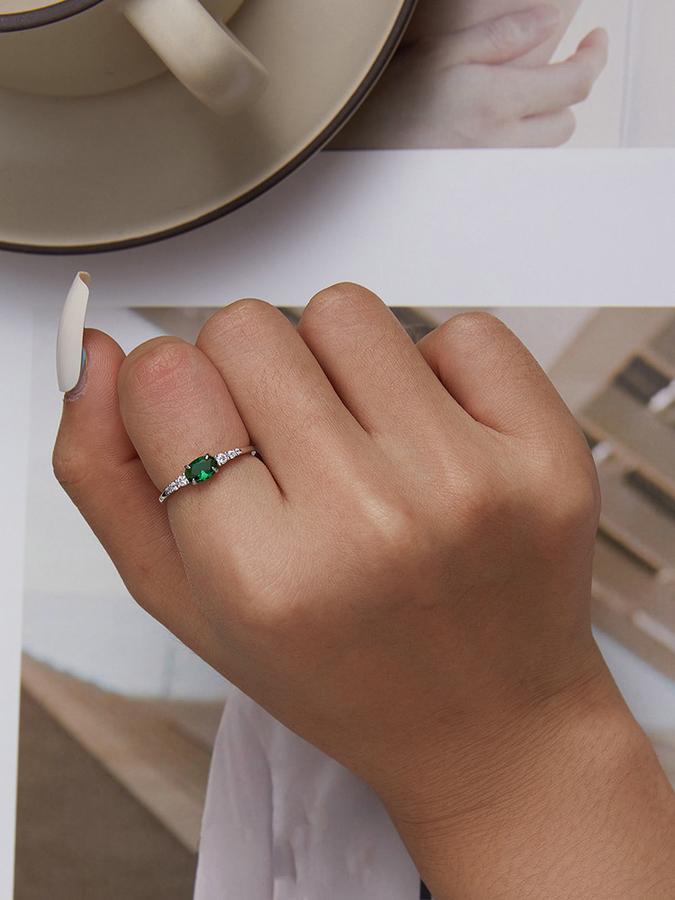 Ezüst női eljegyzési gyűrű smaragdzöld kővel, 8-as méret