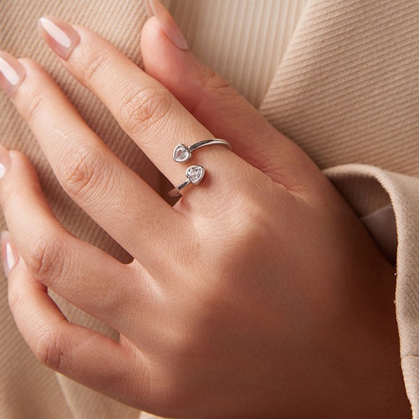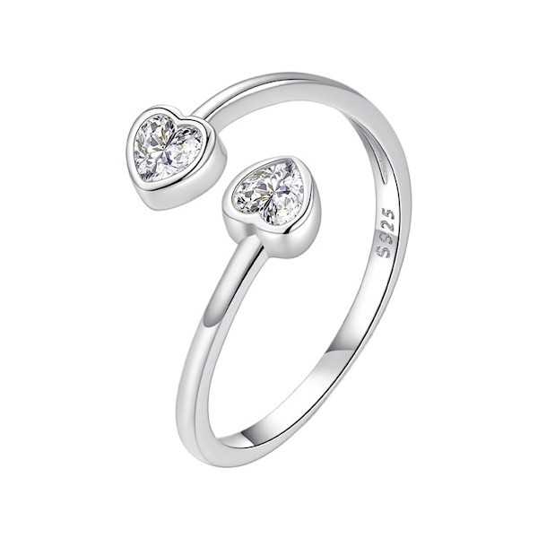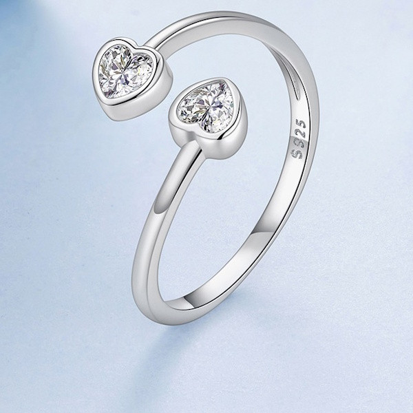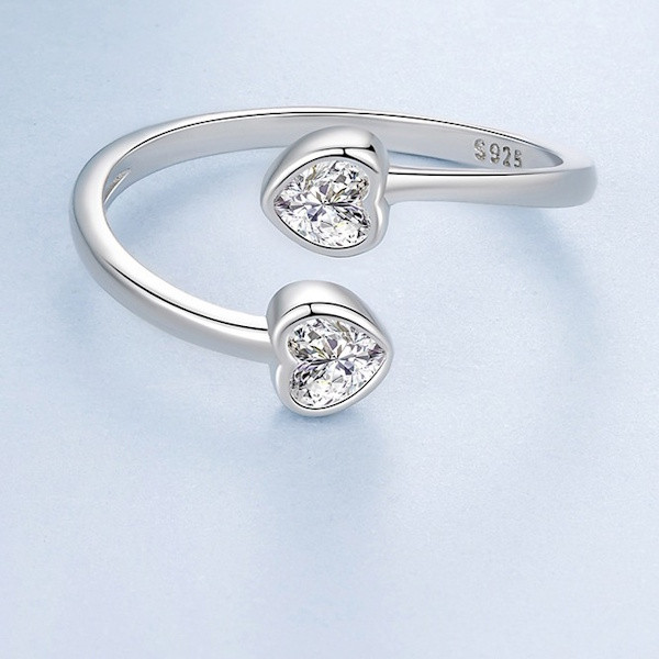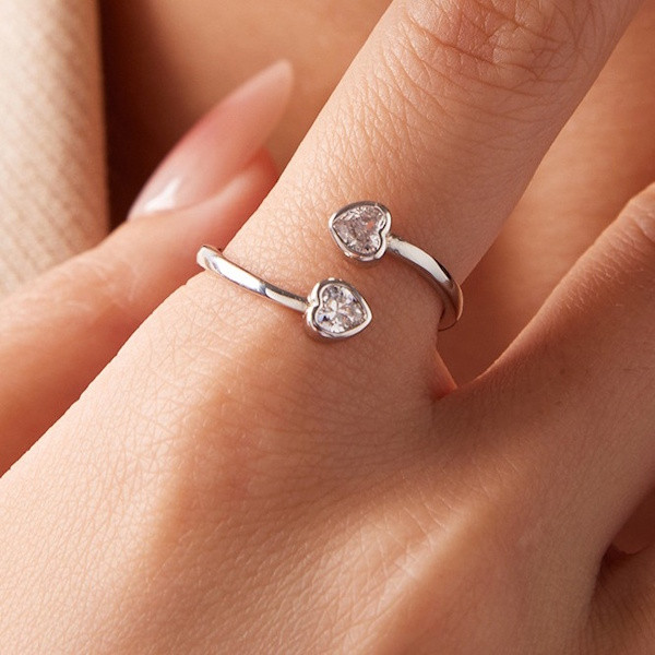 Oxidált ezüstből készült, állítható méretű női gyűrű cirkóniumkristállyal. Szélessége 0.17 cm, súlya 1.8 g. A szív mérete 0.5 × 0.5 cm.