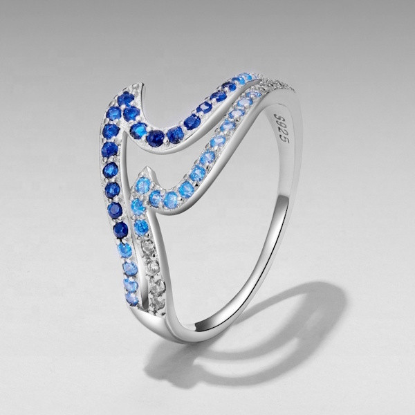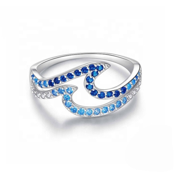 Ezüstből készült női gyűrű fehérarany-bevonattal és cirkóniumkristállyal. Szélessége 0.12-1.1 cm, súlya 2 g.