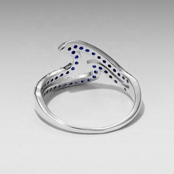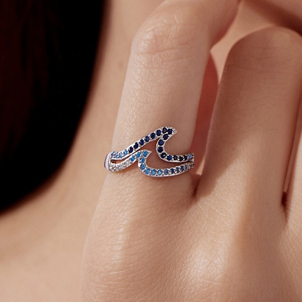 Ezüstből készült női gyűrű fehérarany-bevonattal és cirkóniumkristállyal. Szélessége 0.12-1.1 cm, súlya 2 g.
