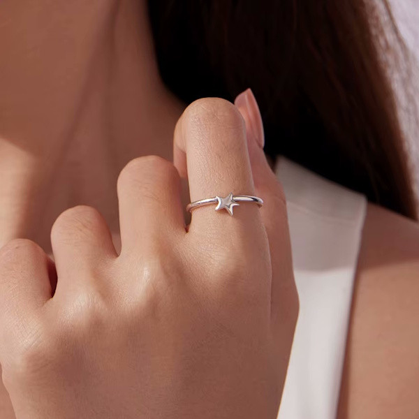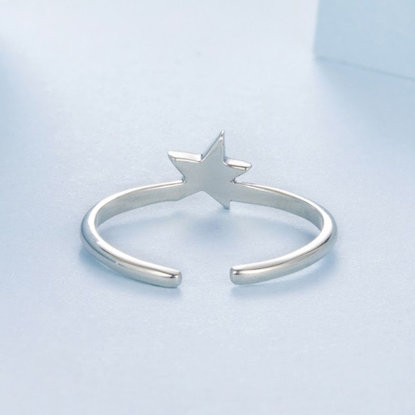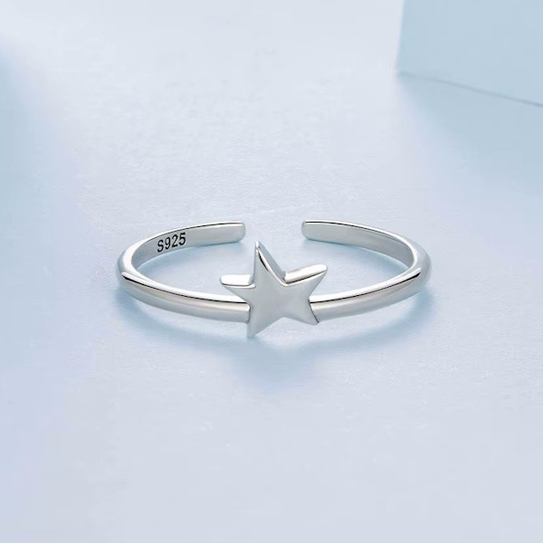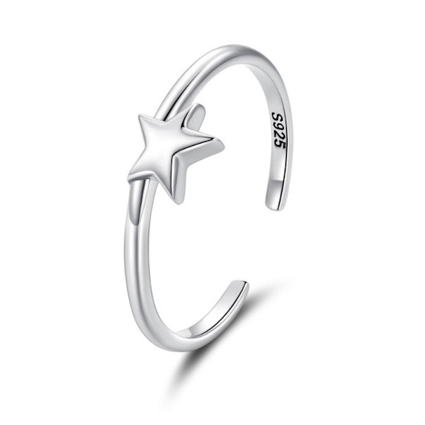 Oxidált ezüstből készült, állítható méretű női gyűrű. Szélessége 0.16 cm, súlya 1.2 g. A csillag mérete 0.6 × 0.6 cm.