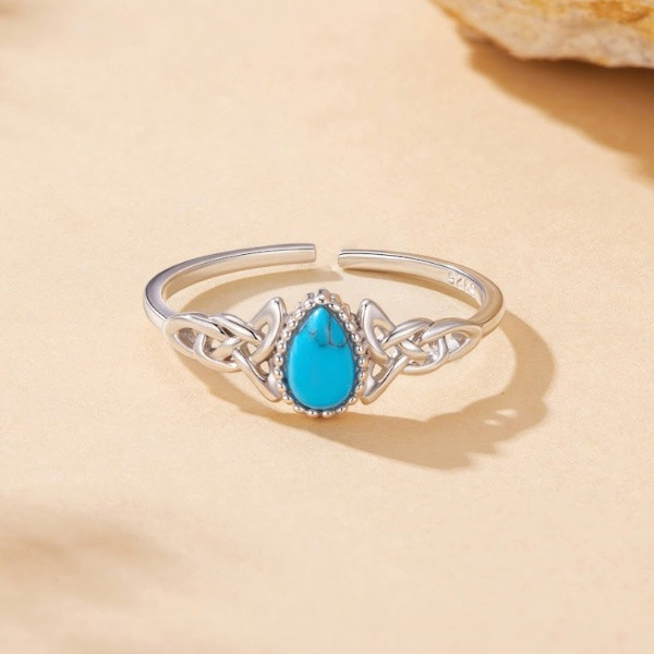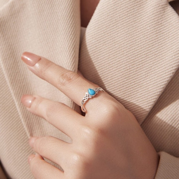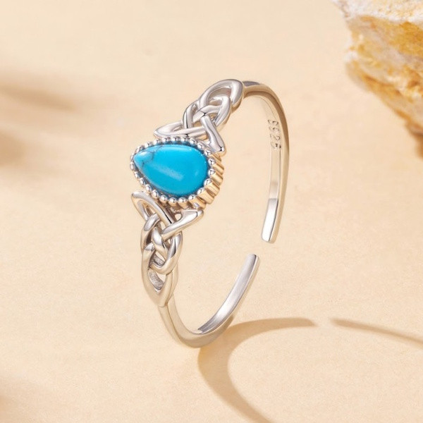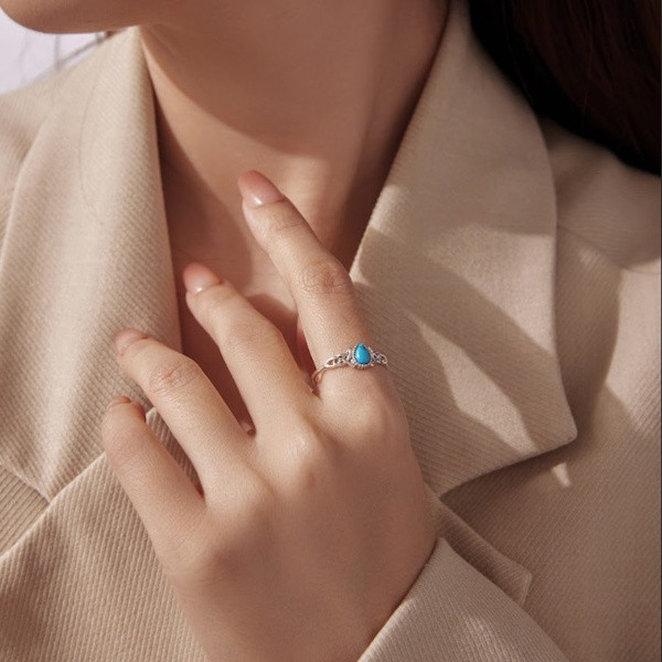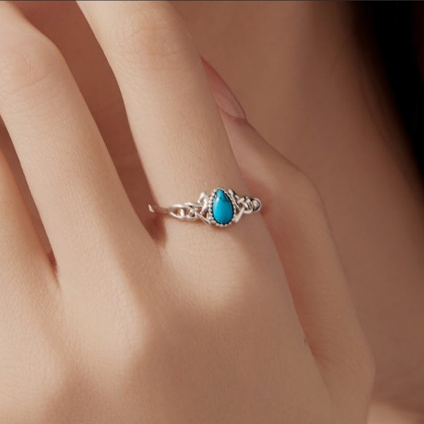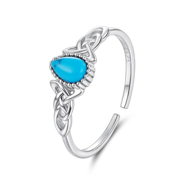 Oxidált ezüstből készült, állítható méretű női gyűrű szintetikus türkizzel. Szélessége 0.12 × 0.7 cm, súlya 1.3 g.