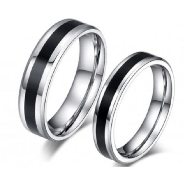 Pánsky snubný prsteň vyrobený z nehrdzavejúcej ocele, zdobený čiernym pásikom tiahnucim sa po strede. Jeho šírka je 6 mm.