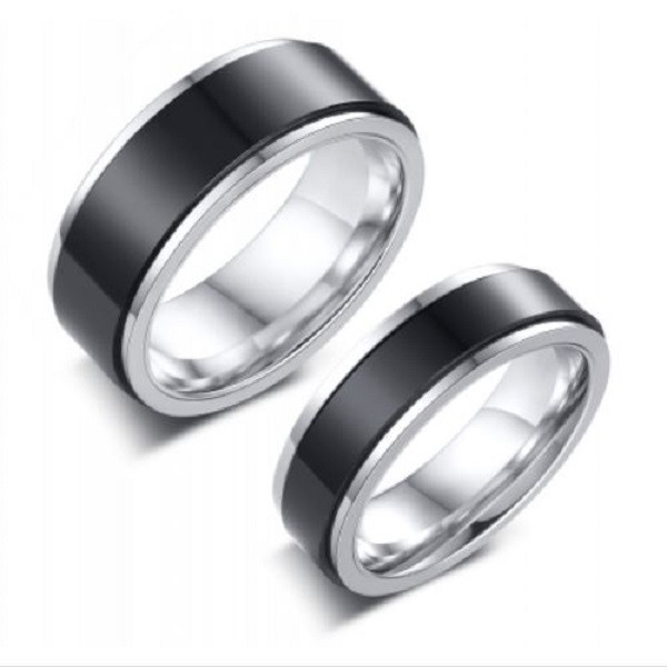 Pánsky snubný prsteň vyrobený z nehrdzavejúcej ocele, zdobený čiernym pásikom. Jeho hrúbka je 2,5 mm, šírka 6 mm.