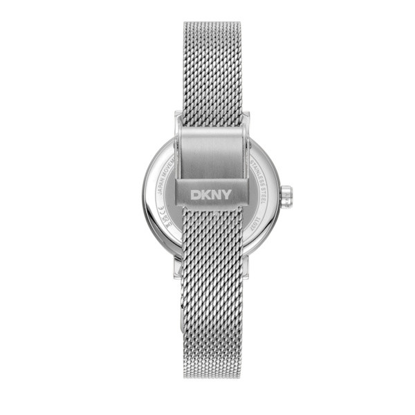 A DKNY Soho Mini sorozatának részeként ez az óra kifinomult dizájnjával és letisztult vonalaival azonnal magára vonzza a figyelmet. A világos óralap és a fémes szíj harmonikus összhangot teremt, így tökéletes kiegészítője lehet bármilyen outfitnek, legyen az elegáns vagy hétköznapi.