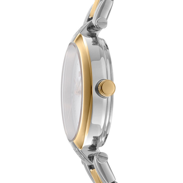 Fedezd fel a DKNY DK1L043M0075 női karóra eleganciáját, amely tökéletes kiegészítője minden stílusnak. Ez a kvarcóra 28 mm átmérőjű tokjával és rozsdamentes acél szíjával igazán mutatós viselet. A két tónusú arany és ezüst színkombináció nemcsak divatos, hanem időtlen szépséget is kölcsönöz.