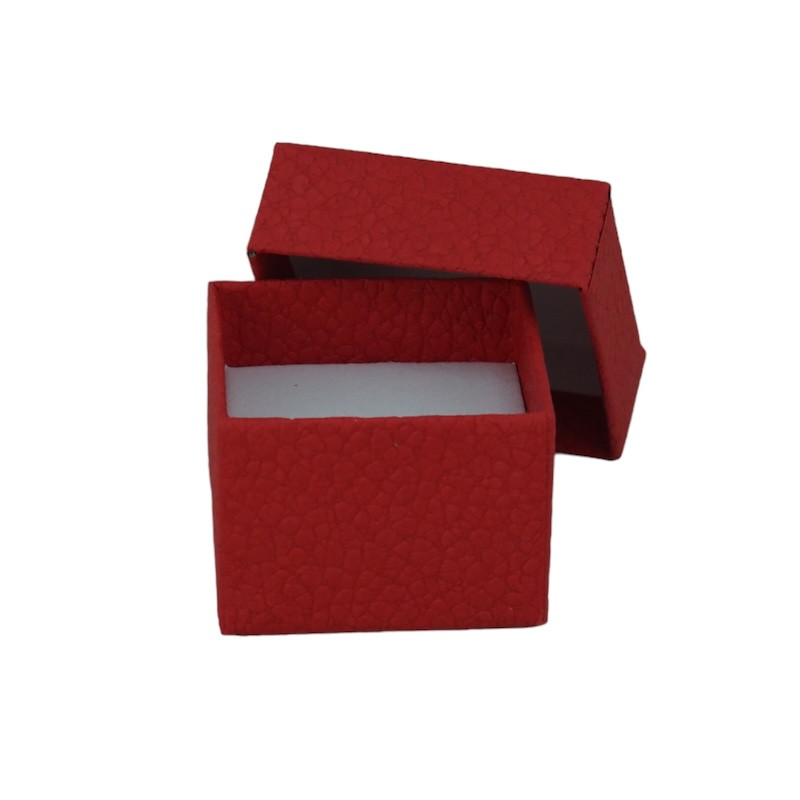Červená, elegantná, kartónová šperkovnica na náušnice alebo prstene.