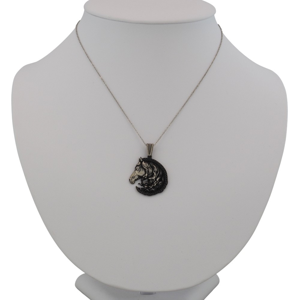 Ez a férfias, karakteres sterling ezüst medál egy ló fejét ábrázolja, amely részletes kidolgozásának köszönhetően szinte életre kel. A medál különlegességét a sötétített felület emeli ki, amely kontrasztot ad a polírozott részekhez, így minden apró részlet – a ló sörényének ívei, arcvonásai – még hangsúlyosabbá válik. A medált hagyományos öntési technológiával készítik, majd kézi utómunkával finomítják, hogy igazán egyedi megjelenést kapjon.