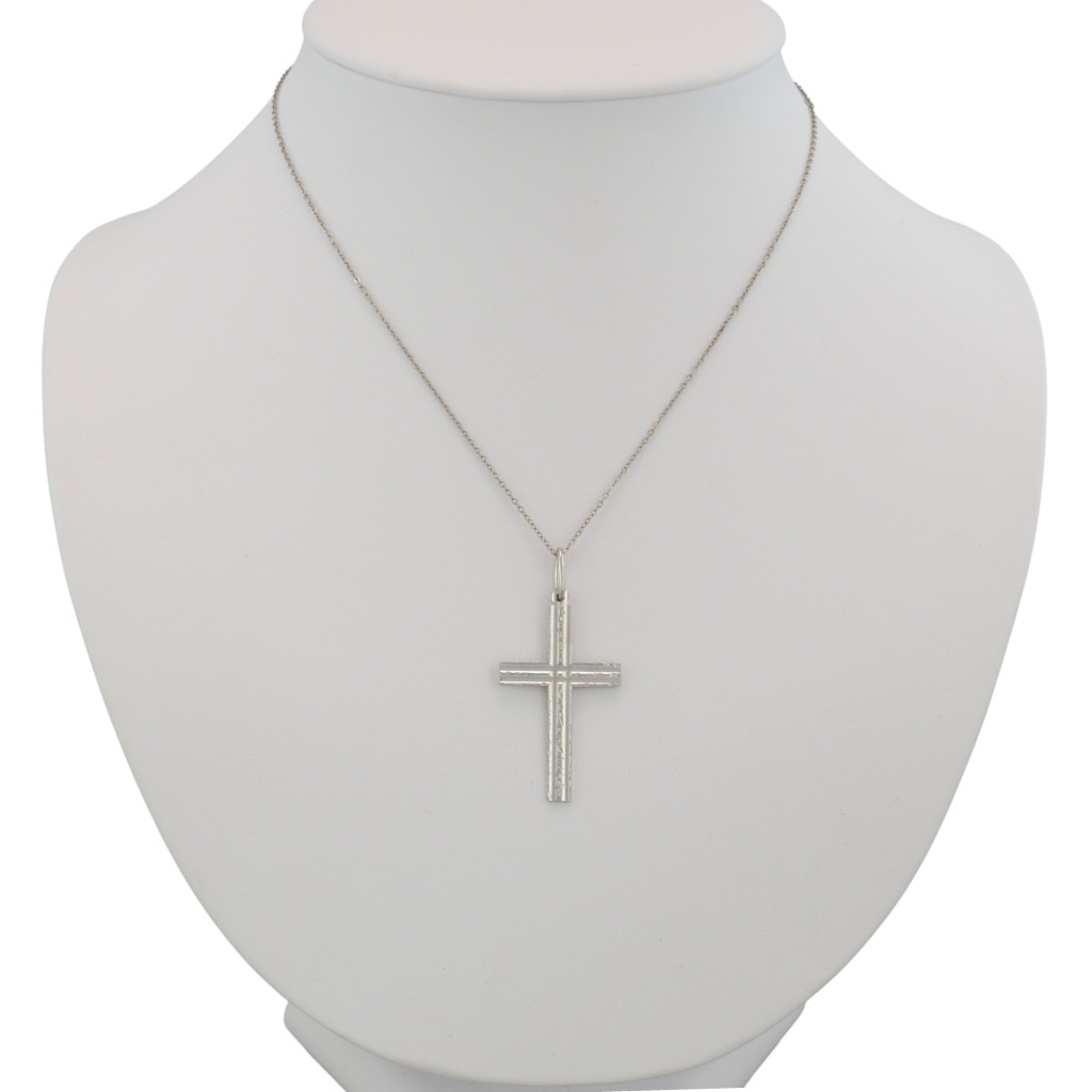Ez a klasszikus kereszt alakú sterling ezüst medál a letisztult elegancia és a kifinomult kézműves munka tökéletes példája.