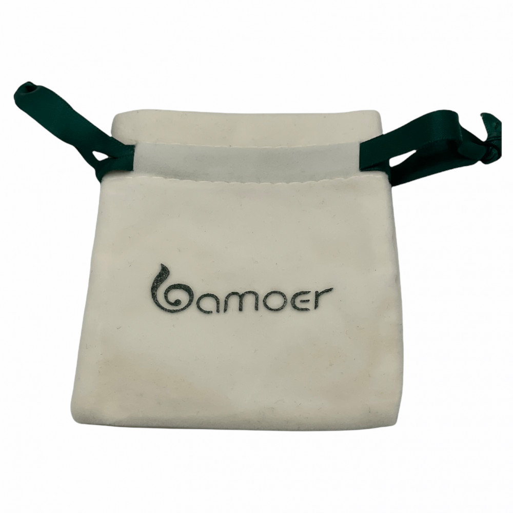 Taštička na šperky z látky s logom Bamoer v bielo-zelenej farbe.