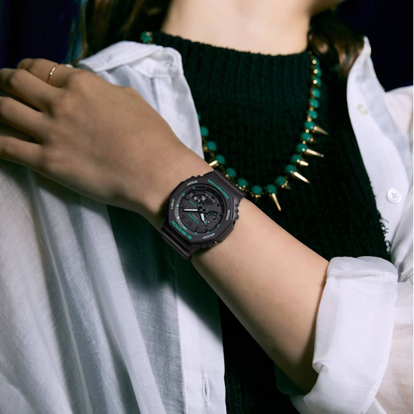 Unisex quartz hodinky Casio GMA-S2100GA-1AER s plastovým puzdrom a remienkom, vodotesnosť 20 ATM.