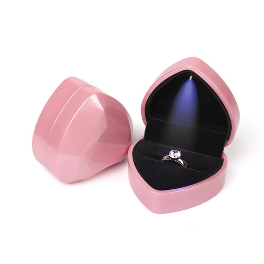 Prémiová šperkovnica na prstene v tvare srdca s LED osvetlením, ružová