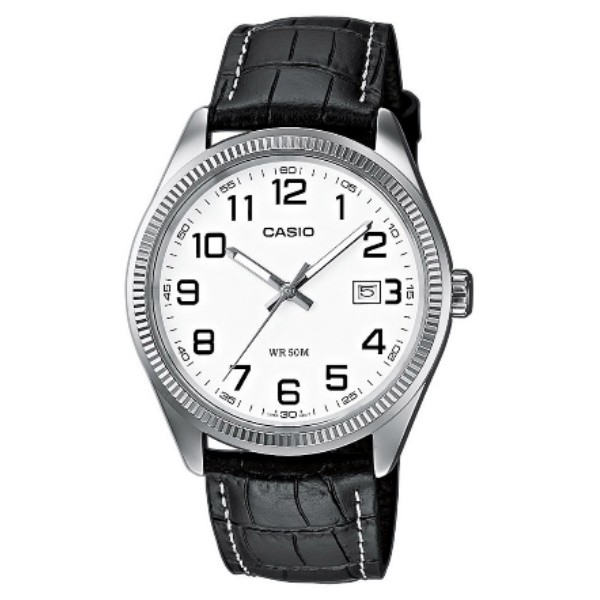 Dámske hodinky Casio Collection LTP-1302PL-7B s koženým remienkom, strieborná šedá/biela