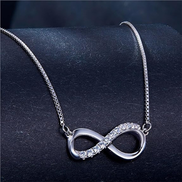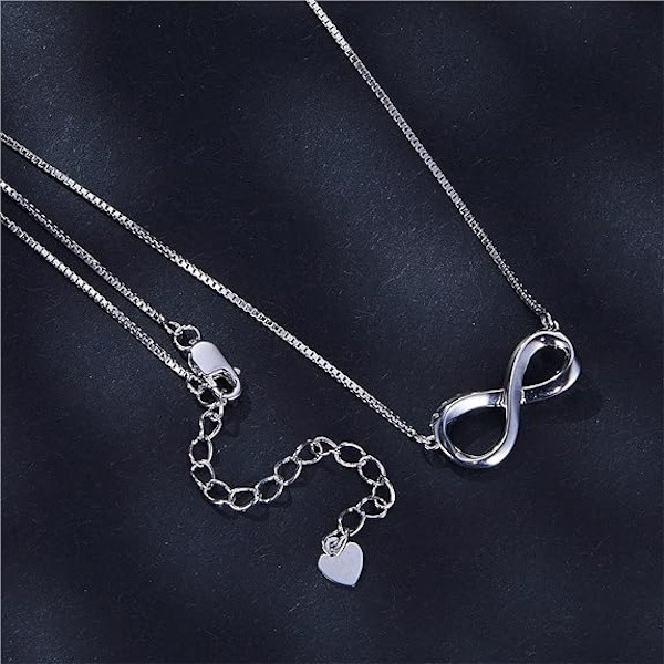 Modern elegancia és időtálló esztétika ötvöződik ebben a nyakláncban. Végtelen jellel jelenik meg, amely az örök kapcsolatot fejezi ki. A precíz megmunkálás és a sima felület a finom részletek jól érvényesülnek, miközben a 925 sterling ezüst tartósságot és kellemes viseletet garantál. Könnyedén kombinálható visszafogott vagy karakteresebb darabokkal, így hétköznapra és alkalmakra egyaránt ideális. A viselési komfortot nan hosszúságban és nan kivitelben biztosítja. Tedd különlegessé megjelenésed ezzel a kiegészítővel. A letisztult vonalvezetés visszafogott eleganciát kölcsönöz. Könnyen rétegezhető más láncokkal, így személyre szabott összeállítás hozható létre. A gondos csiszolásnak köszönhetően a felület szépen veri vissza a fényt. Nem hivalkodó, mégis karakteres jelenléttel emeli ki a megjelenést. Harmonikusan illeszkedik modern és klasszikus ruhatárba egyaránt. A letisztult kivitel és a kényelmes viselhetőség időtálló választássá teszi.