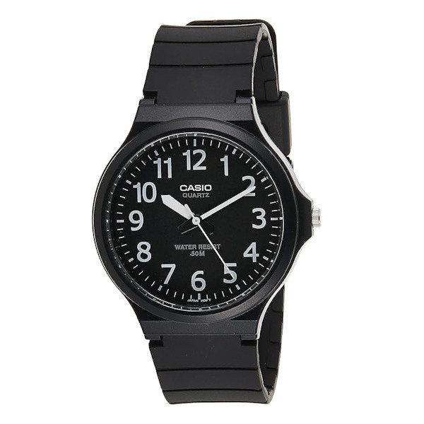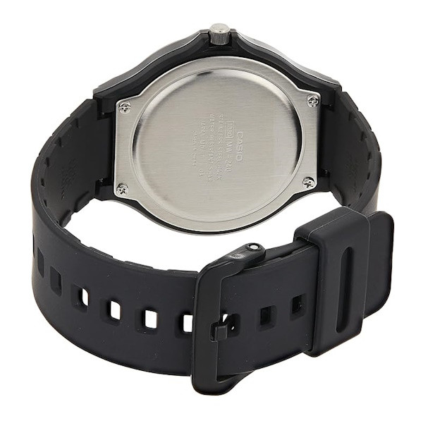 Pánske quartz hodinky Casio MW-240-1B s plastovým puzdrom a remienkom, vodotesnosť 5 ATM.