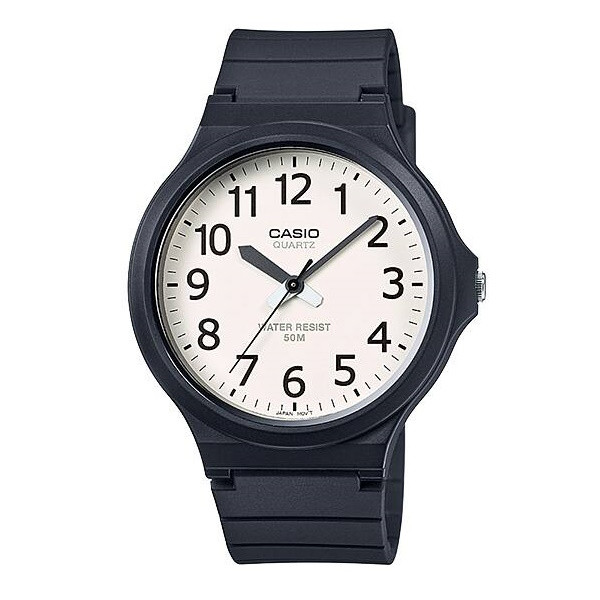 Pánske quartz hodinky Casio MW-240-7B s plastovým puzdrom a remienkom, vodotesnosť 5 ATM.
