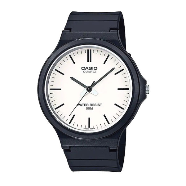 Pánske quartz hodinky Casio MW-240-7EVDF s plastovým puzdrom a remienkom, vodotesnosť 5 ATM.