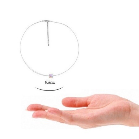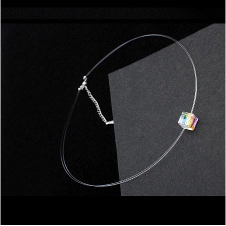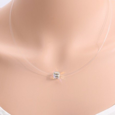 Antialergický náhrdelník bez obsahu niklu a olova, s priehľadnou retiazkou a bielym príveskom Swarovski v tvare kocky.