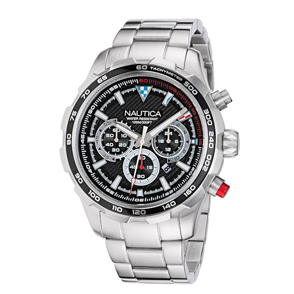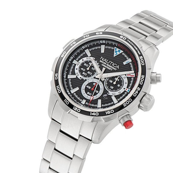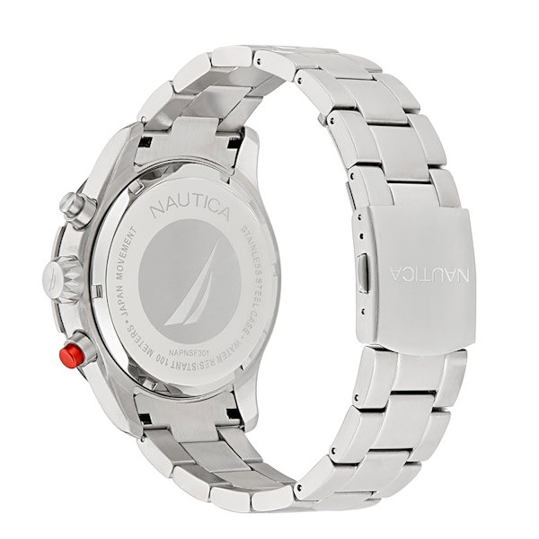 Pánske quartzové hodinky Nautica NAPNSF301 s puzdrom a remienkom z recyklovanej nehrdzavejúcej ocele, vodotesnosť 10 ATM.