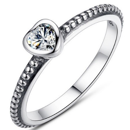 Elegantný štýl, strieborný prsteň s kameňom so vzorom srdca.