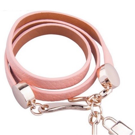 Trojitý kožený náramok so zámkom a príveskom na kľúč.