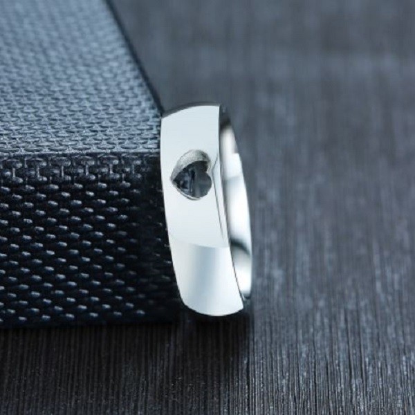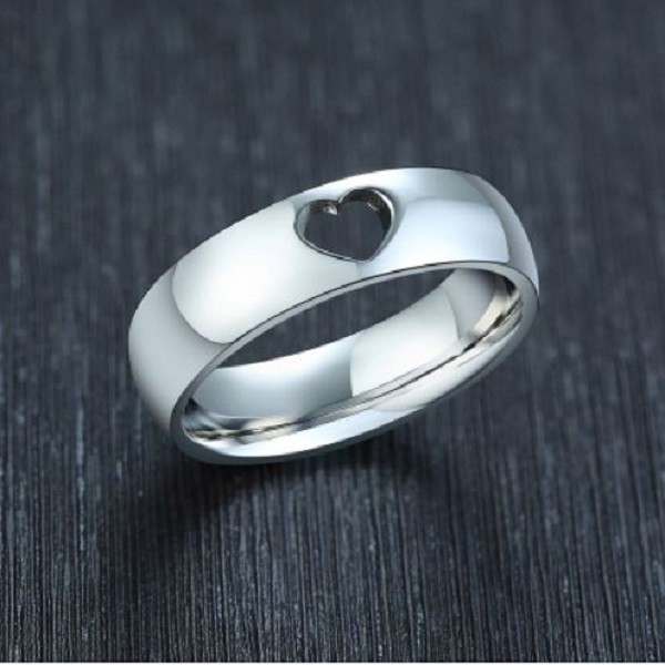 Svadobná obrúčka z nerezovej ocele, s hladkým povrchom, zdobená výrezom v tvare srdca. Má hrúbku 2 mm, šírku 6 mm a hmotnosť 4,7 g.