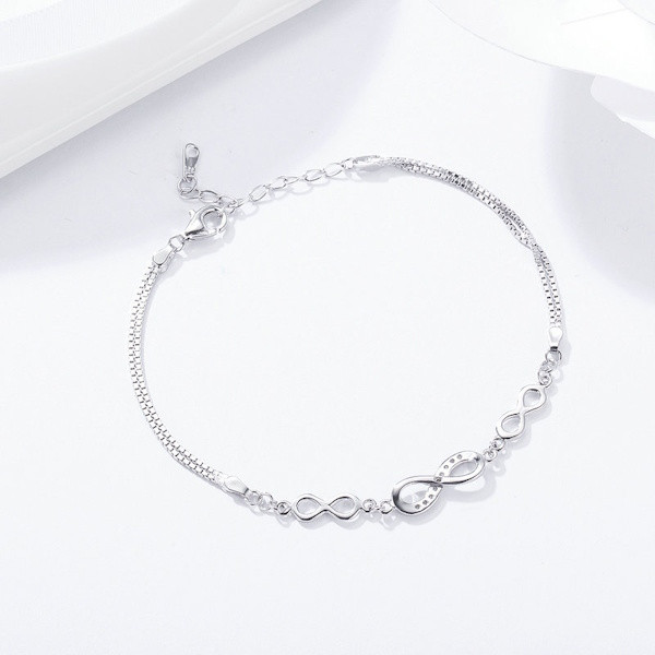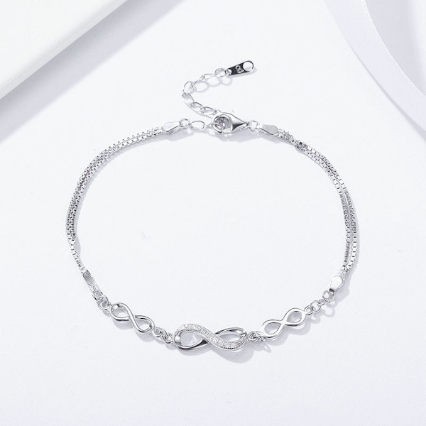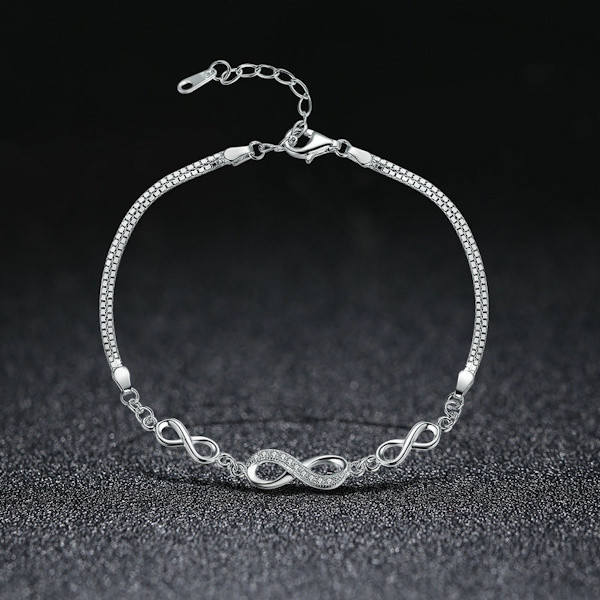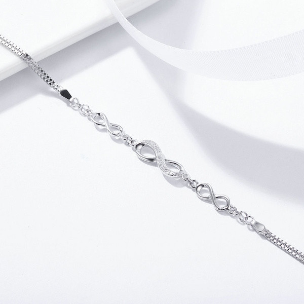 Ismerd meg ezt az elegáns és modern ezüst karkötőt, amely a végtelen jelével díszített, így tökéletesen szimbolizálja az örökkévalóságot és a határtalan lehetőségeket. A karkötő 925 sterling ezüstből készült, platinabevonata pedig különleges csillogást biztosít számára. A finoman elhelyezett cirkóniumkristályok tovább fokozzák az ékszer fényét és eleganciáját.