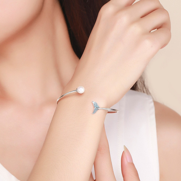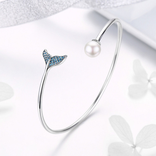 Merülj el a tenger mélyének varázslatos világában ezzel a lenyűgöző ezüst karpereccel, amelyet a hableányok mitikus alakja ihletett. A 925 sterling ezüstből készült ékszer finom kidolgozása és elegáns megjelenése azonnal magával ragad. A valódi gyöngy és a csillogó cirkóniumkristályok tökéletes harmóniában ötvöződnek, hogy a karperec egyszerre legyen modern és időtlen.