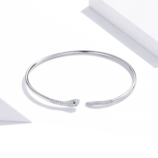 Ez a lenyűgöző ezüst karperec minden női ékszergyűjtemény ékköve lehet. A 925 sterling ezüstből készült karperec elegáns platinabevonattal és ragyogó cirkóniumkristállyal van díszítve, ami különleges fényt és eleganciát kölcsönöz viselőjének. A karperec középpontjában egy kígyó motívum található, amely az ősi kultúrákban a bölcsességet és az újjászületést szimbolizálja. Tökéletes választás mindennapi viseletre vagy különleges alkalmakra.