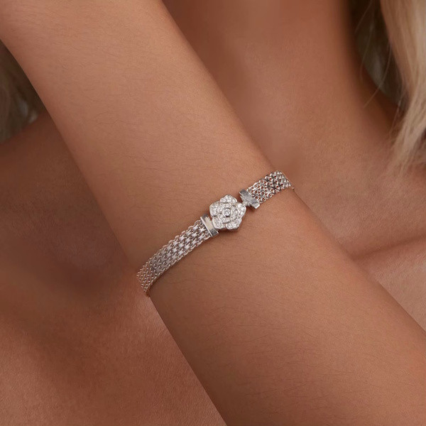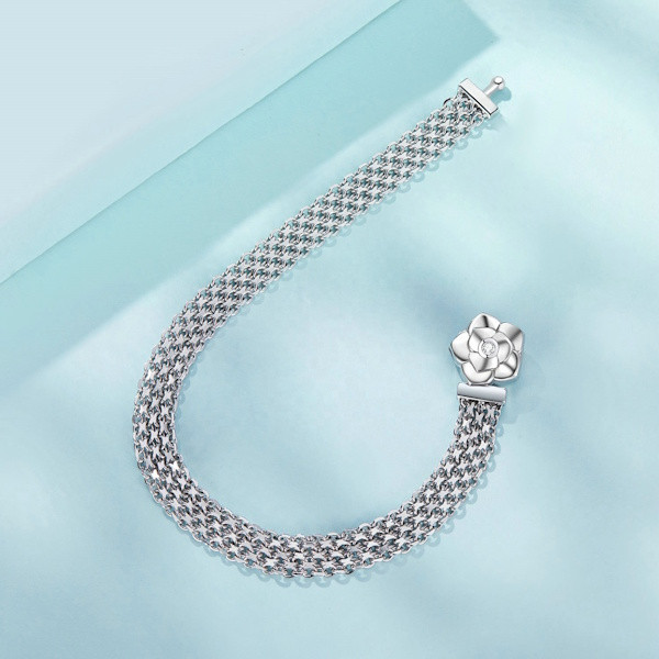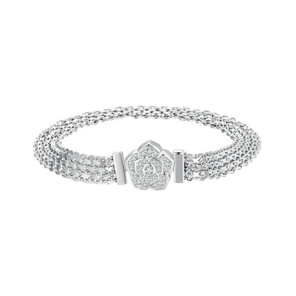 Légy elbűvölő ezzel a gyönyörű ezüst karkötővel, amely rózsával és ragyogó cirkóniumkristályokkal van díszítve. Az elegáns 925 sterling ezüst alapanyag és a platinabevonat gondoskodik arról, hogy ez a kiegészítő hosszú élettartammal és lenyűgöző fényességgel szolgáljon. A 19 cm hosszú karkötő súlya mindössze 7.9 g, így kellemesen viselhető egész nap.