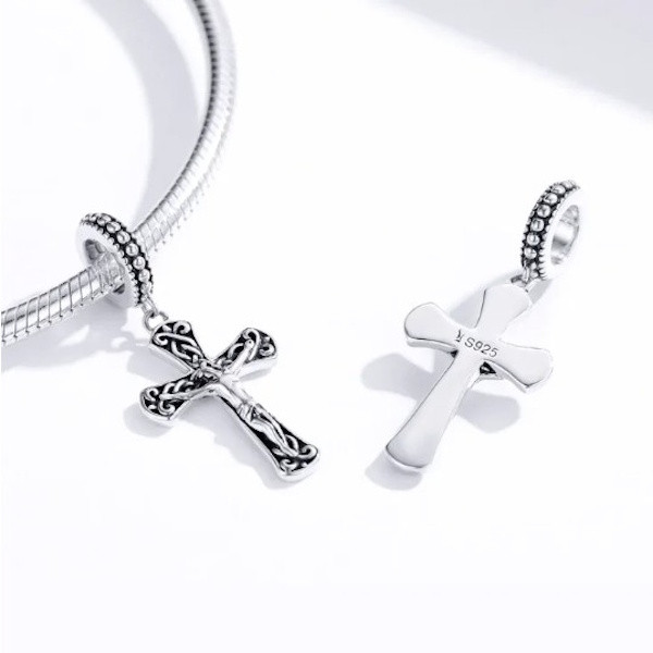 Hozd ki a maximumot ékszereidből ezzel a különleges, oxidált 925 sterling ezüst charm-mal! Az elegáns kereszt alakú medál tökéletesen illeszkedik karkötőkre és nyakláncokra, így bármelyik kedvenc ékszeredet egyedivé varázsolhatod vele.