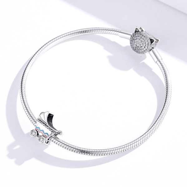 Ez a bájos 925 sterling ezüst charm tökéletes kiegészítője lesz kedvenc karkötődnek vagy nyakláncodnak. A gondosan megformált babakocsi alakú charm 925 sterling ezüstből készült, amely tartósságot és eleganciát kölcsönöz. A színes zománcozás és a csillogó cirkóniumkristályok ragyogóvá teszik a kiegészítőt, így garantáltan vonzza a tekinteteket.