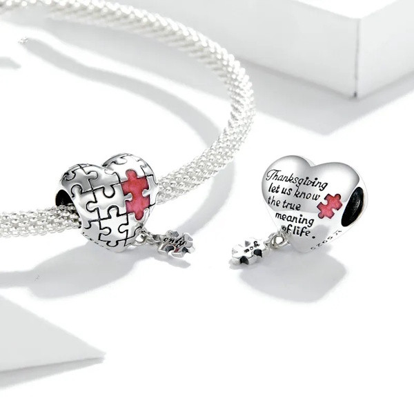 Ezüst charm (925), szívpuzzle