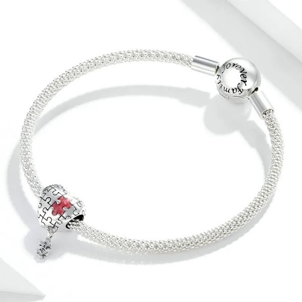 Ez a 925 sterling ezüst charm, szívpuzzle igazi kincs az ékszerek világában. A 925 sterling ezüstből készült darab elegáns oxidált felületet kapott, amelyet élénk piros zománcozás tesz még különlegesebbé. Tökéletesen illik mind karkötőre, mind nyakláncra, így bármilyen szett remek kiegészítője lehet.