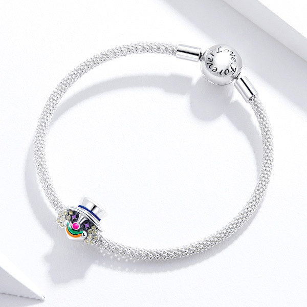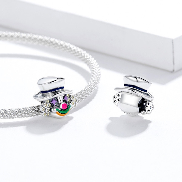 Ez a vidám bohóc charm tökéletes választás, ha egy kis játékosságot szeretnél csempészni ékszereid közé. A 925 sterling ezüstből készült ékszer nem csak elegáns, hanem a színes zománcozás és csillogó cirkóniumkristályok révén igazán különleges megjelenést is kapott. Mérete ideális, hiszen 1.1 x 1.2 cm-es kialakítása finoman illeszkedik karkötődre vagy nyakláncodra, miközben a 2.6 grammos súlya kényelmes viselést biztosít.
