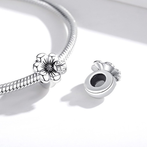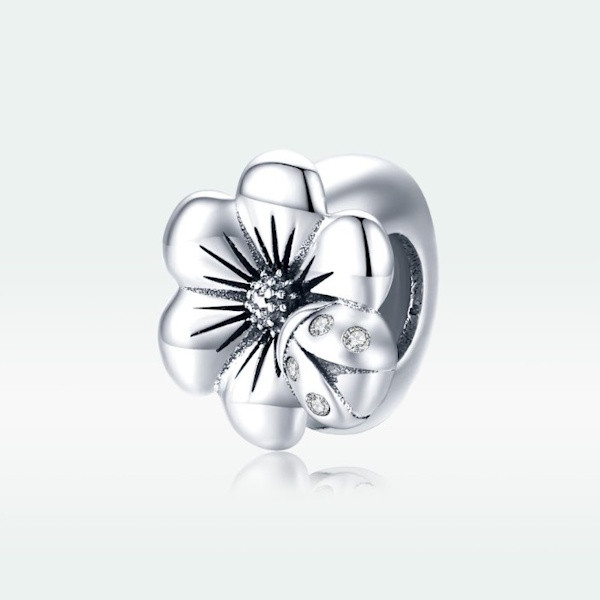 Dobd fel ékszereidet ezzel a bájos 925 sterling ezüst charmmal, mely egy virágot és egy apró katicát ábrázol. Ez a charm nemcsak a természet szerelmeseinek szól, hanem mindenkinek, aki szeretné megőrizni a tavaszi hangulatot az év minden napján. A virág a növekedés és az újjászületés szimbóluma, míg a katicabogár szerencsét és védelmet hoz viselőjének.