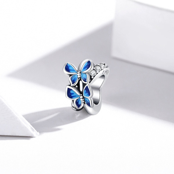 Ezüst charm (925), kék pillangók