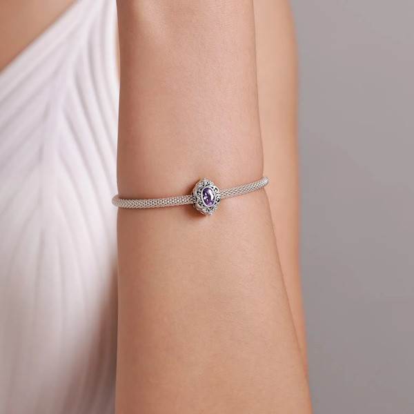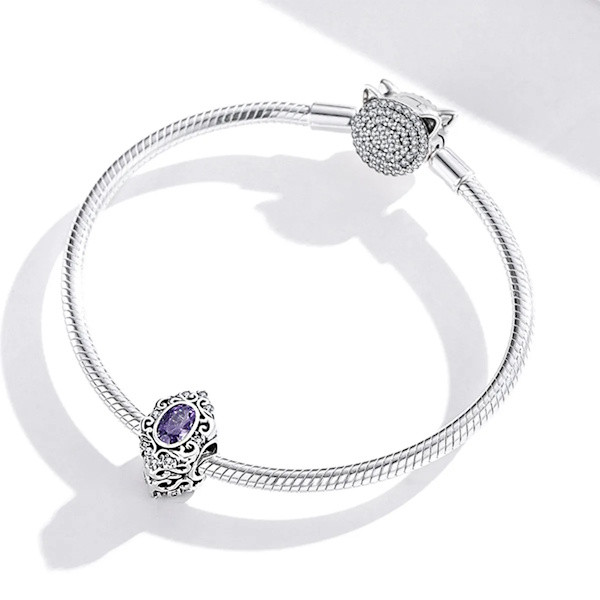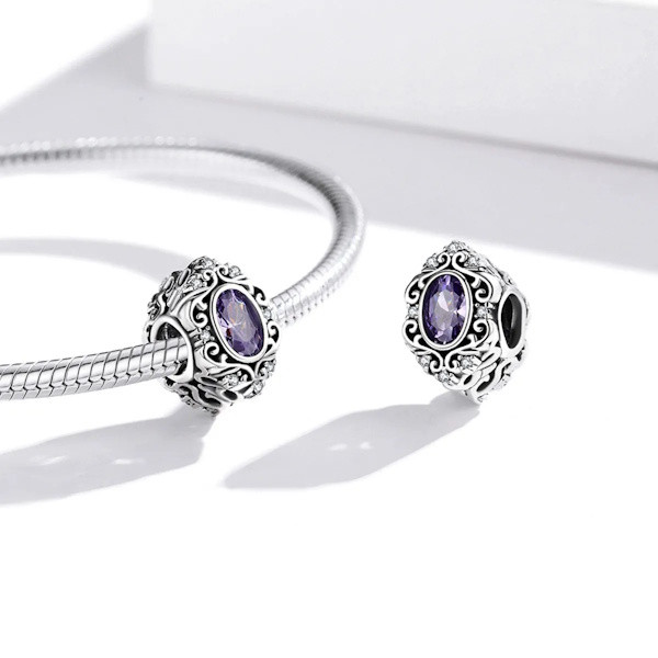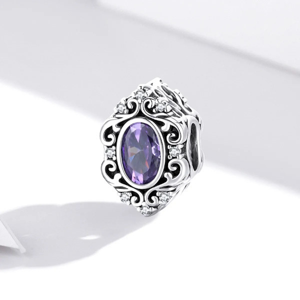 Szeretnéd feldobni ékszerkollekciódat valami igazán különlegessel? Ez a 925 sterling ezüst charm vintage stílusban tökéletes választás! A 925 sterling ezüstből készült, oxidált felületű charm egy lila cirkóniumkristállyal díszített romantikus ékszer, amely bármely karkötőn vagy nyakláncon csodásan mutat. A csepp alakzat eleganciát és kifinomultságot sugároz, miközben a lila kristály sejtelmes ragyogása elvarázsol.