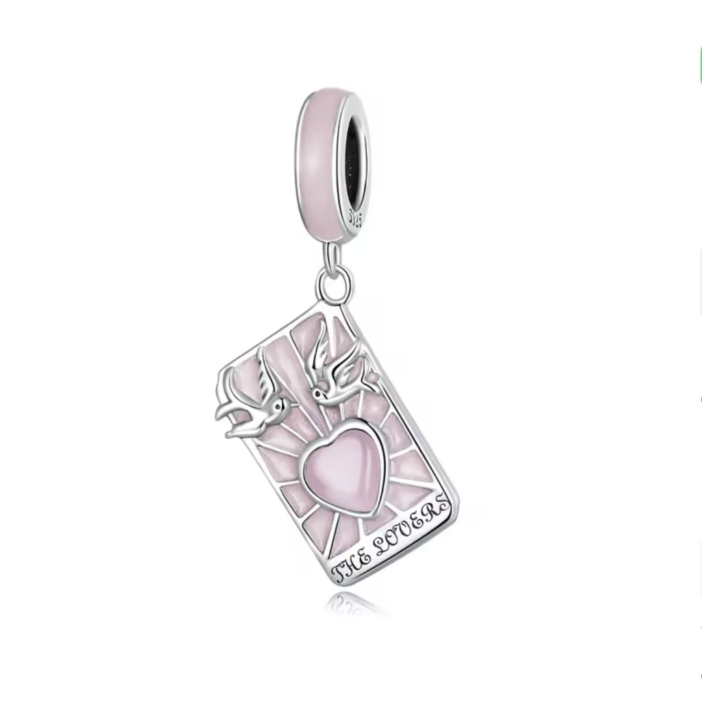 Ez a gyönyörű tarot kártya inspirálta charm a szeretet, harmónia és összetartozás szimbóluma. Kiváló minőségű 925 sterling ezüstből készült, így tartós és időtálló kiegészítője lehet ékszerkollekciódnak. A „The Lovers” motívum, rózsaszín szívvel és repülő galambokkal, az igaz szerelem üzenetét hordozza, emlékeztetve viselőjét a mély érzelmi kötelékek fontosságára.