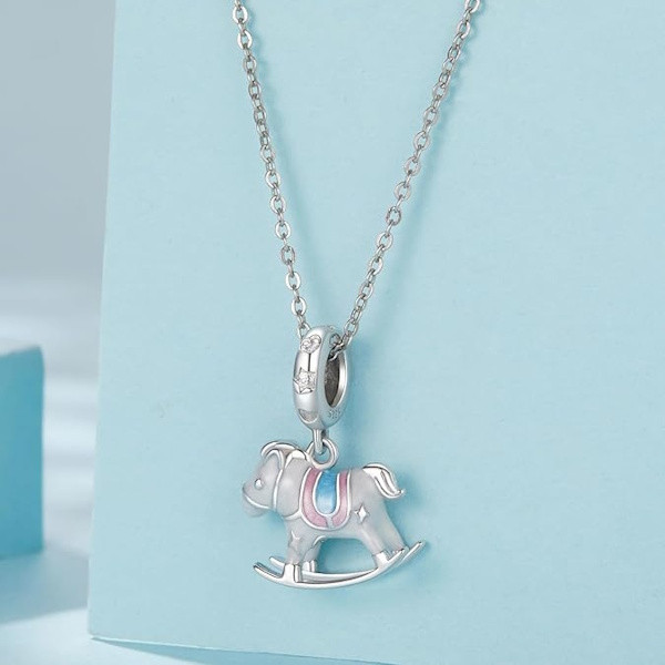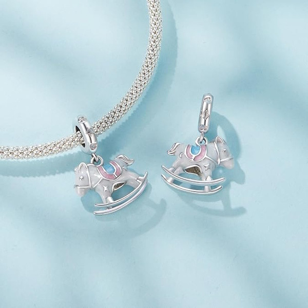 Engedd, hogy ez az elbűvölő ezüst hintaló charm a gyermeki álmok világába repítsen! Kiváló minőségű 925-ös sterling ezüstből készült, és a ragyogó cirkóniumkristályok teszik igazán különlegessé. Finom kidolgozása és 2.6 grammos súlya ideális választássá teszi karkötődre vagy nyakláncodra, így mindig veled lehet ez a kedves emlék. Tökéletes ajándék lehet szerettednek, aki szereti az egyedi és jelentéssel bíró kiegészítőket. Lepd meg magad vagy valaki különlegeset ezzel a bájos darabbal, amely biztosan mosolyt csal az arcokra.
